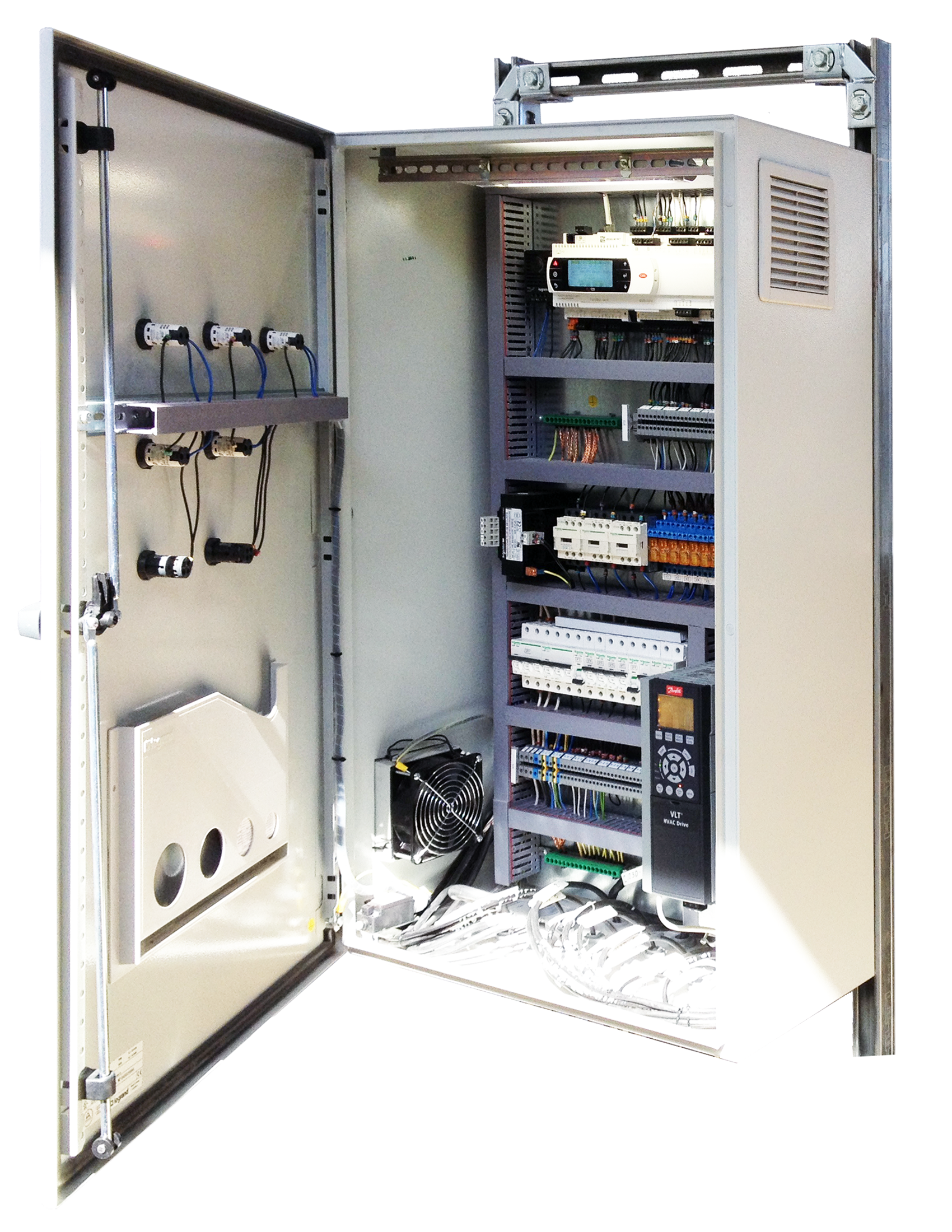 Мы разрабатываем и собираем шкафы автоматики для вентиляции, ИТП, котельных, насосных станций и управления климатом, используя оборудование ведущих европейских брендов.